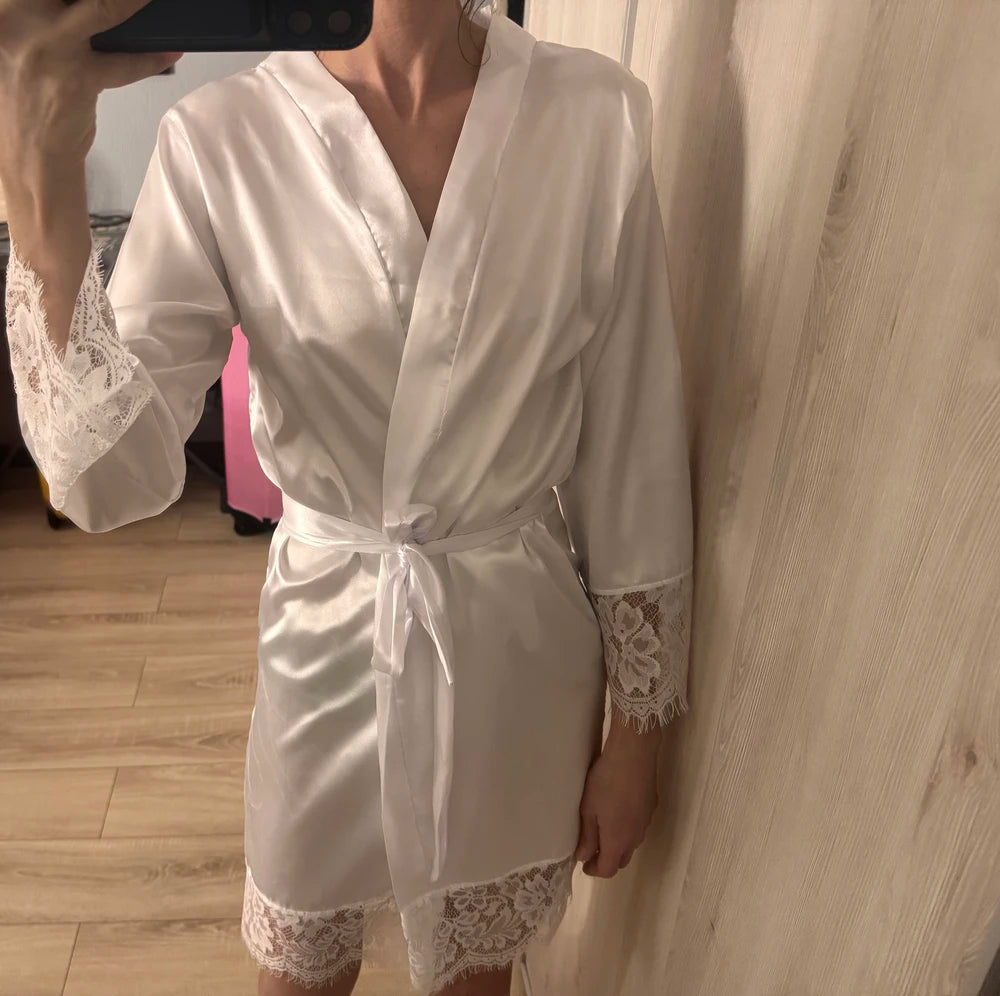 Robe Rendado Curto de Cetim Branco